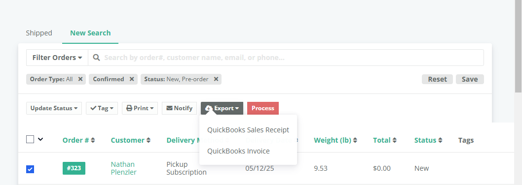 Use the Filter Orders option to select the specific orders you want to export.